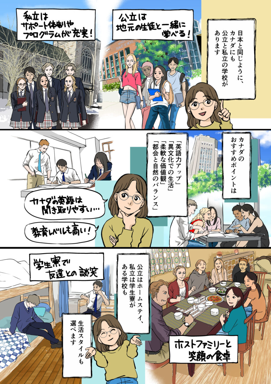 カナダの高校留学では、「私立校(ボーディングスクール)」と「公立校」の2つの選択肢があります。それぞれの特徴を知って、自分に合った留学スタイルを選びましょう。